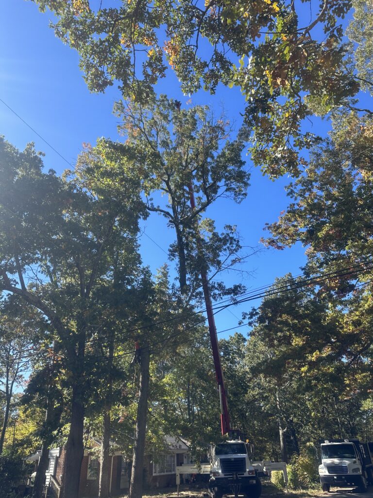 In the heart of Franklinton, North Carolina, our team recently undertook a challenging yet rewarding tree removal project. The task at hand involved the removal of two imposing oak trees situated in the front of a property. Additionally, our team was tasked with carefully pruning branches from another tree and removing two additional trees from the area. The client had a specific request to preserve the wood chips generated during the process, and we opted to use a crane to ensure a safe and efficient removal.