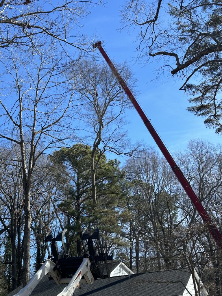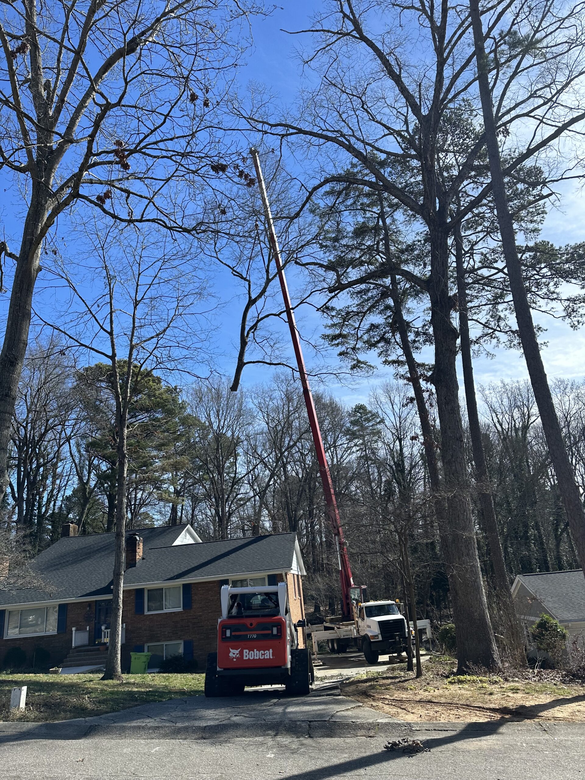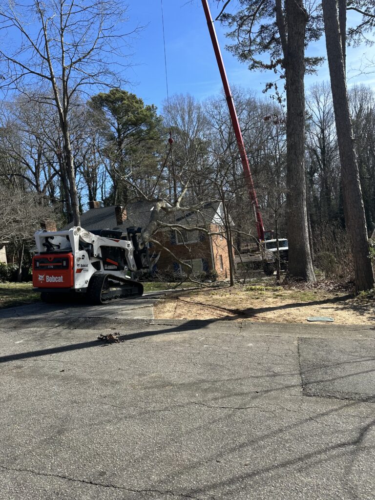 In a recent project handled by North Raleigh Tree Service, we successfully removed a red oak tree located at the back center of a residential property in North Raleigh. The tree, showing signs of decline and posing a risk to nearby structures, demanded immediate attention. With our expertise and specialized equipment, including the use of a crane, we executed the removal with precision and efficiency. Our team meticulously maneuvered sections of the tree away from the property, ensuring minimal disruption to the surrounding landscape while prioritizing safety.