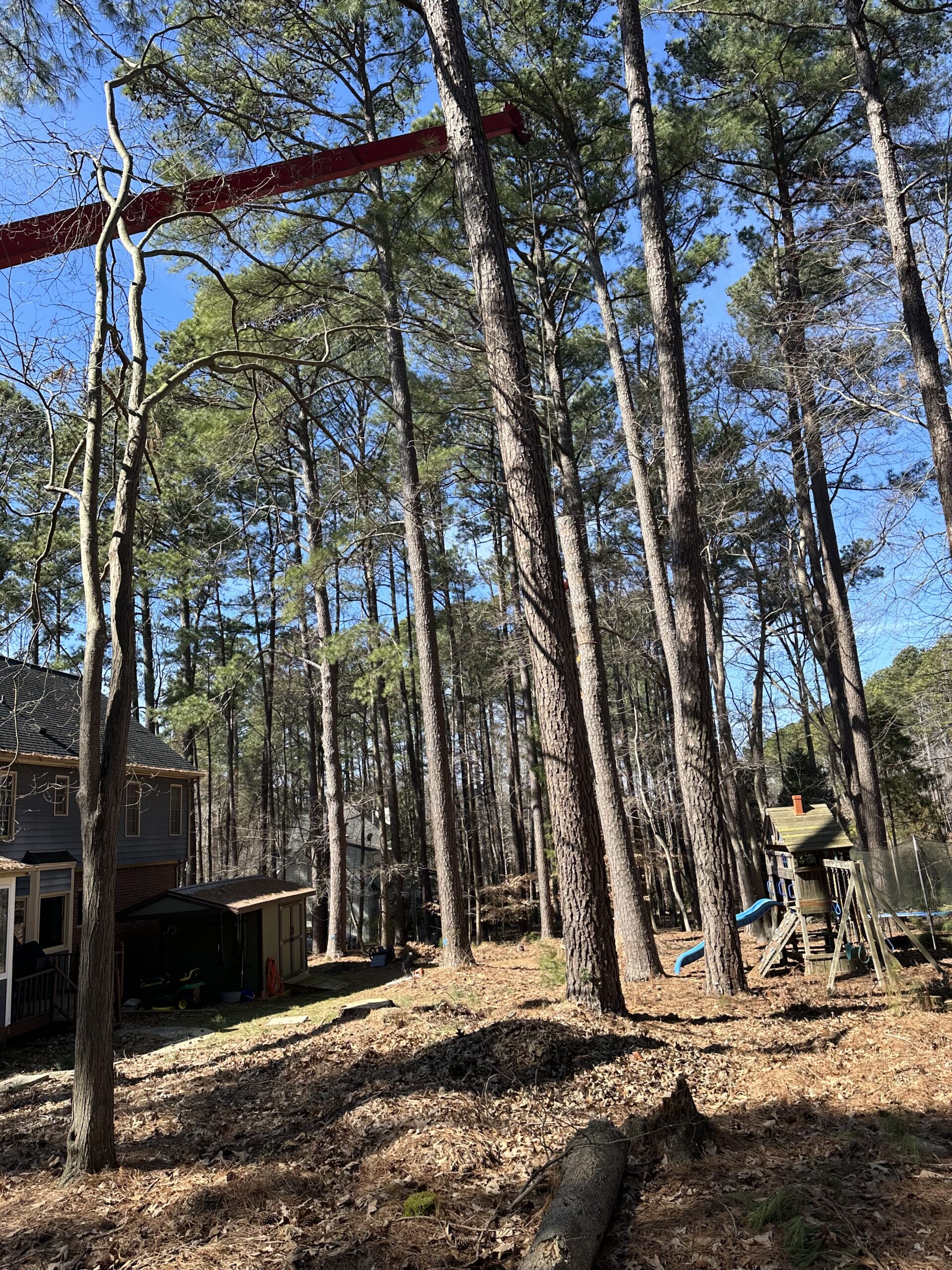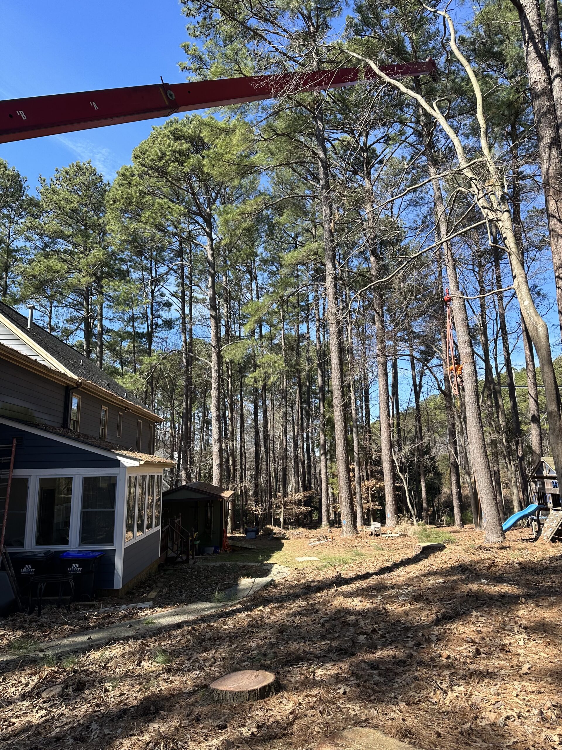 At North Raleigh Tree, we recently completed a challenging yet rewarding project involving the removal of 16 trees scattered around a property, along with 7 additional trees on the side. With a combination of manual labor and the strategic use of a crane, our skilled team tackled the tree removal efficiently, ensuring safety and precision throughout the process. Despite the complexities involved, we successfully completed the job within a single day, showcasing our commitment to delivering prompt and reliable tree removal services to our valued clients.